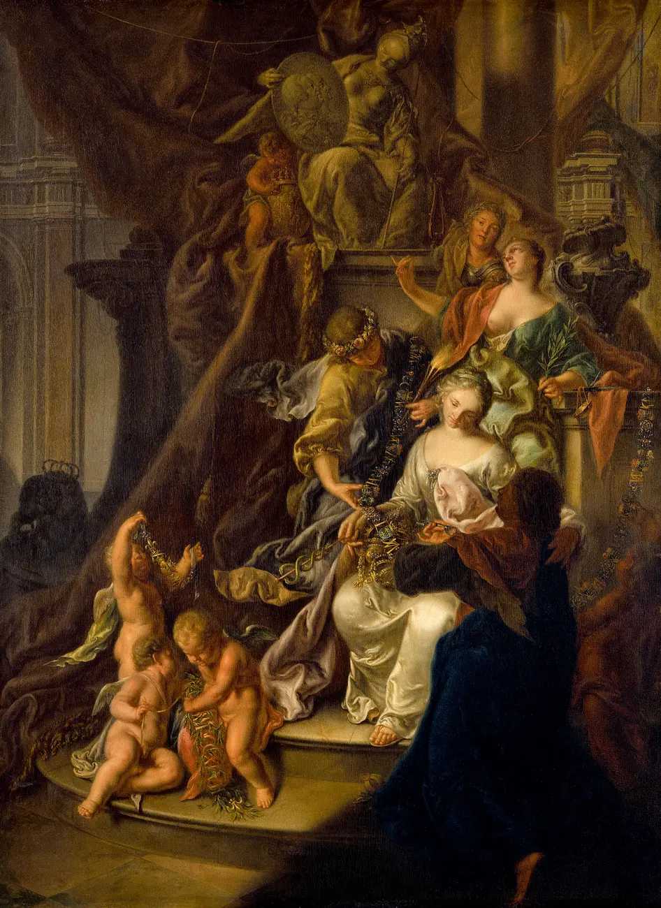 Baroque festivities, the power of love, the magic of commedia dell'arte, and even the Dresden court fools Hante and Fröhlich are brought to life in statuettes and reliefs made of ivory, terracotta and Meissen porcelain, or in the drawings and prints inspiring them. Likenesses and portraits in the form of paintings, copperplate etchings, images on medals, busts or reliefs made of ivory, terracotta or Böttger stoneware give the exhibition its elegant charm.